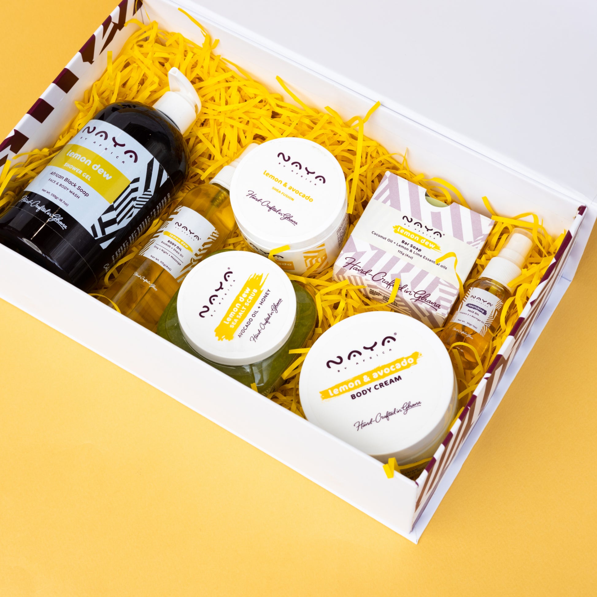 Elevate your self-care routine with the lavish NAYA by Africa Indulgence Gift Set, designed to envelop you in a month-long journey of rejuvenation and relaxation. This exquisite collection of luxurious spa essentials invites you to indulge your senses and pamper your skin.